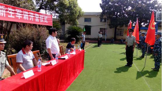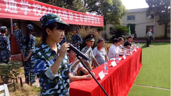 2016級7班新生代表同學發言,承諾要以軍人的標準嚴格要求自己,遵守紀律、聽從指揮、刻苦訓練、爭先創優,通過軍訓磨練意志、鍛煉勇氣,勇往直前,實現夢想。
